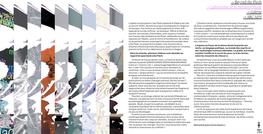 Site web (http://btf.esac-cambrai.net/index.html) développé pour archiver et documenter les travaux des étudiant·es de l’Atelier de Recherches et de Création Arts-Scènes-Médias. Cette documentation présente les participant·es, le contexte de création, leurs recherches ainsi que des photographies de l’exposition.