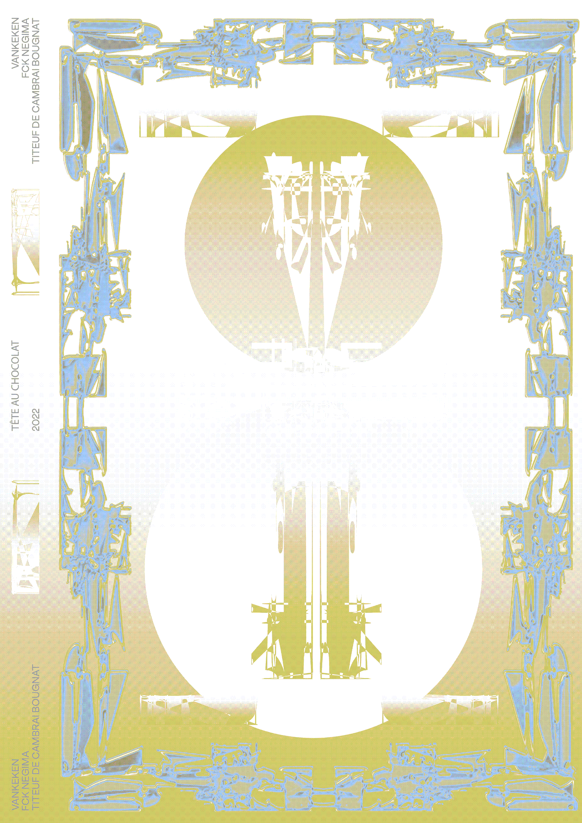 Cette affiche au format 40 × 60 cm, conçue en collectif, réunit trois visuels expérimentaux superposés. Nous avons d’abord exploré l’outil typographique Ada, en nous imposant la contrainte d’un seul mot et d’une seule couleur chacun pour créer une image en vue de l’impression finale.