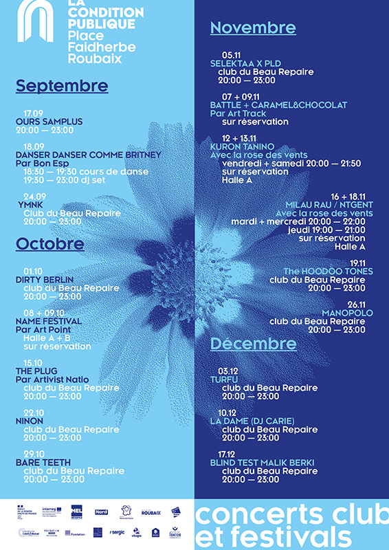 à la Condition Publique de Roubaix, j'ai créé divers visuels adaptés à différents supports et formats de communication.